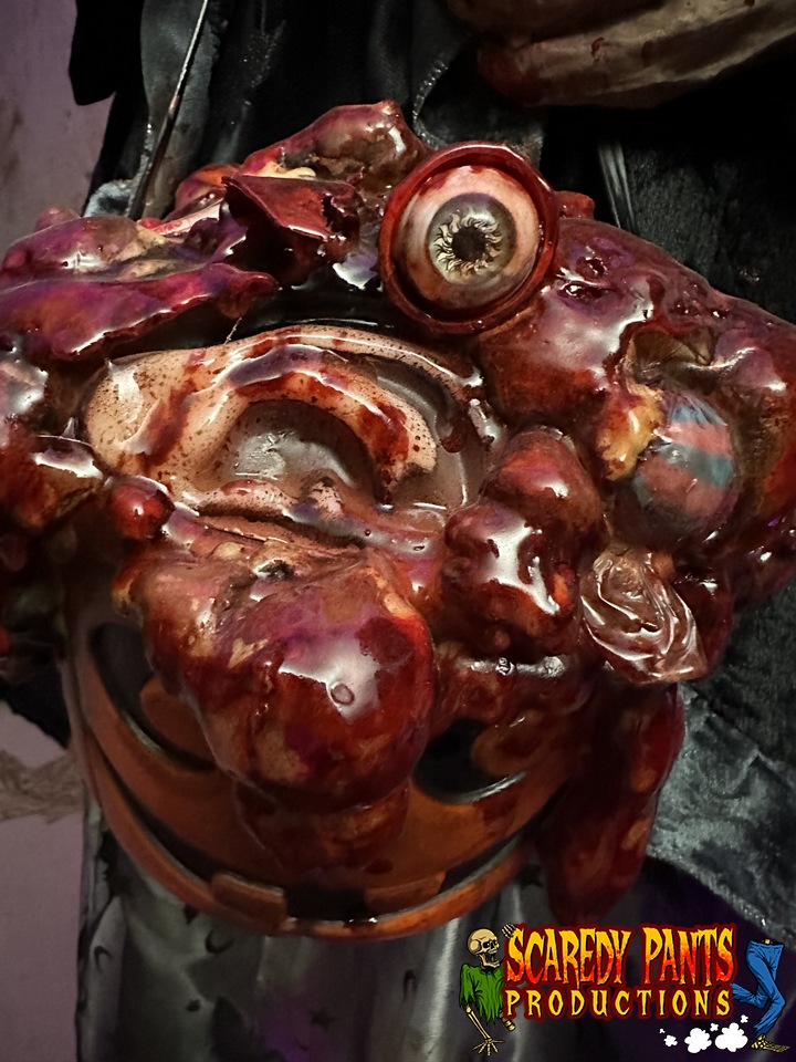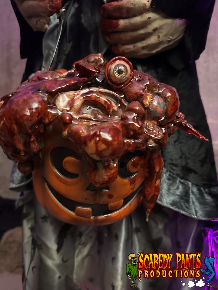 Design Overview: Step into a spine-chilling Halloween experience that blends the iconic styles of the 1980s with a grotesque twist. The Trick or Tr-eaters is a unique animatronic display that brings five retro, 1980s-inspired trick or treating children to life with terrifying realism. Each child is dressed in period-accurate, spooky costumes and is detailed with blood, giving them a chilling, bloody look. Powered by air pistons, their eerie motions, combined with their grotesque features, create a haunting and unforgettable centerpiece for your Halloween setup.