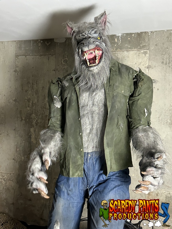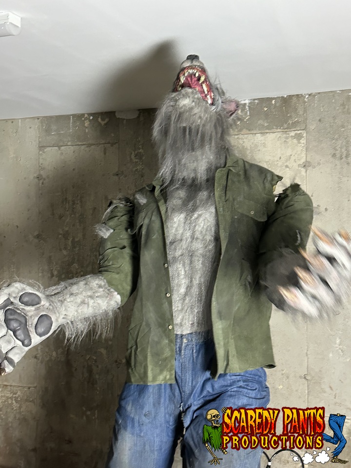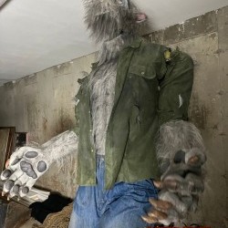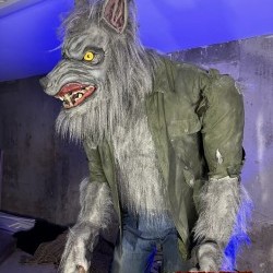Animation and Features: The werewolf is programmed with a variety of movements and sounds, including growls and howls. It can be activated via a number of different triggers or programmed to respond to motion sensors, creating an interactive experience.
