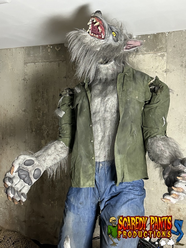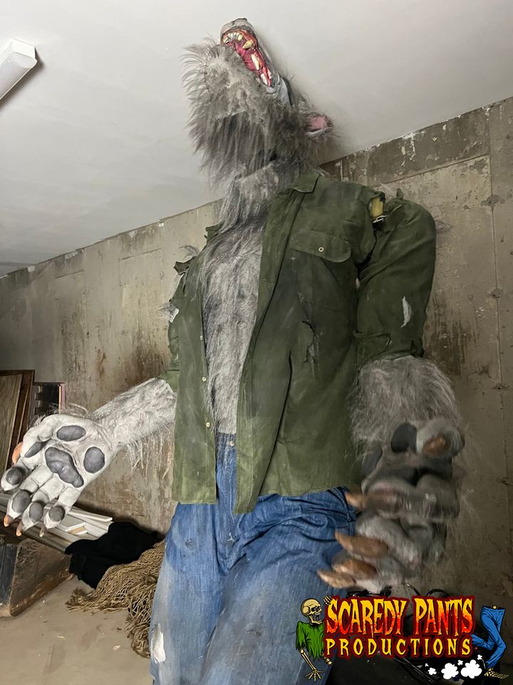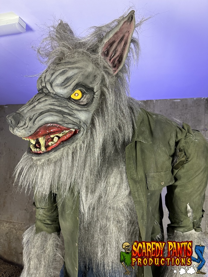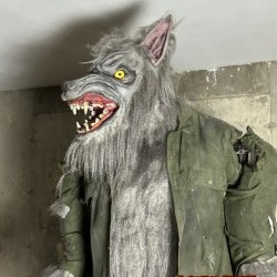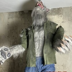 Animation and Features: The werewolf is programmed with a variety of movements and sounds, including growls and howls. It can be activated via a number of different triggers or programmed to respond to motion sensors, creating an interactive experience.